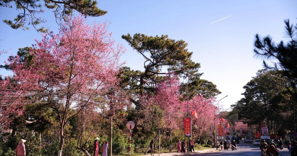 Giai đoạn cuối tháng Giêng, mai anh đào nở rộ tại nhiều tuyến đường trung tâm Đà Lạt,…